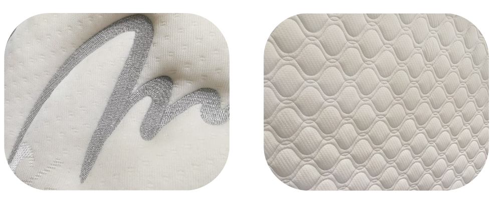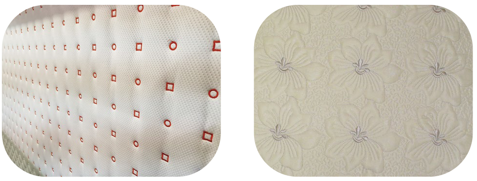 2. 適合床墊圍邊打點圖案絎縫,同時在指定位置刺繡商標。