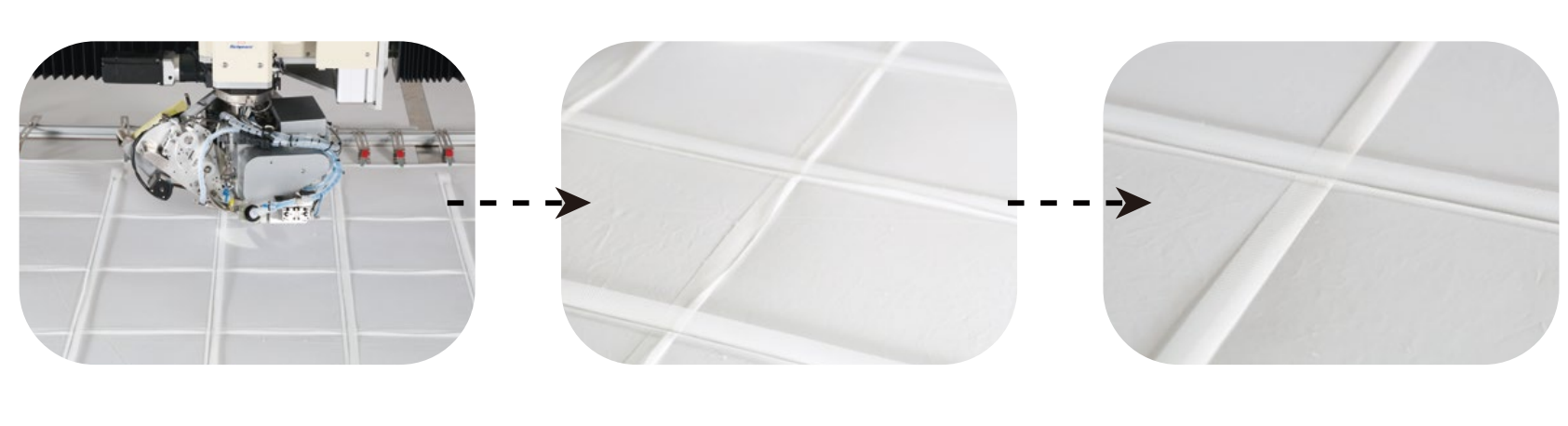適用于家紡領域,立襯羽絨被縫紉,切穿羽絨被縫紉,帶襯條的其它家紡產品等。