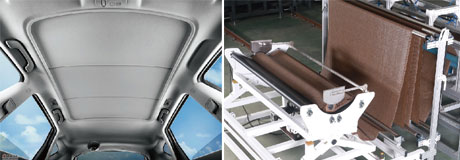 適用于汽車天窗卷陽簾面料,復合皮革,海綿,尼龍網布等。